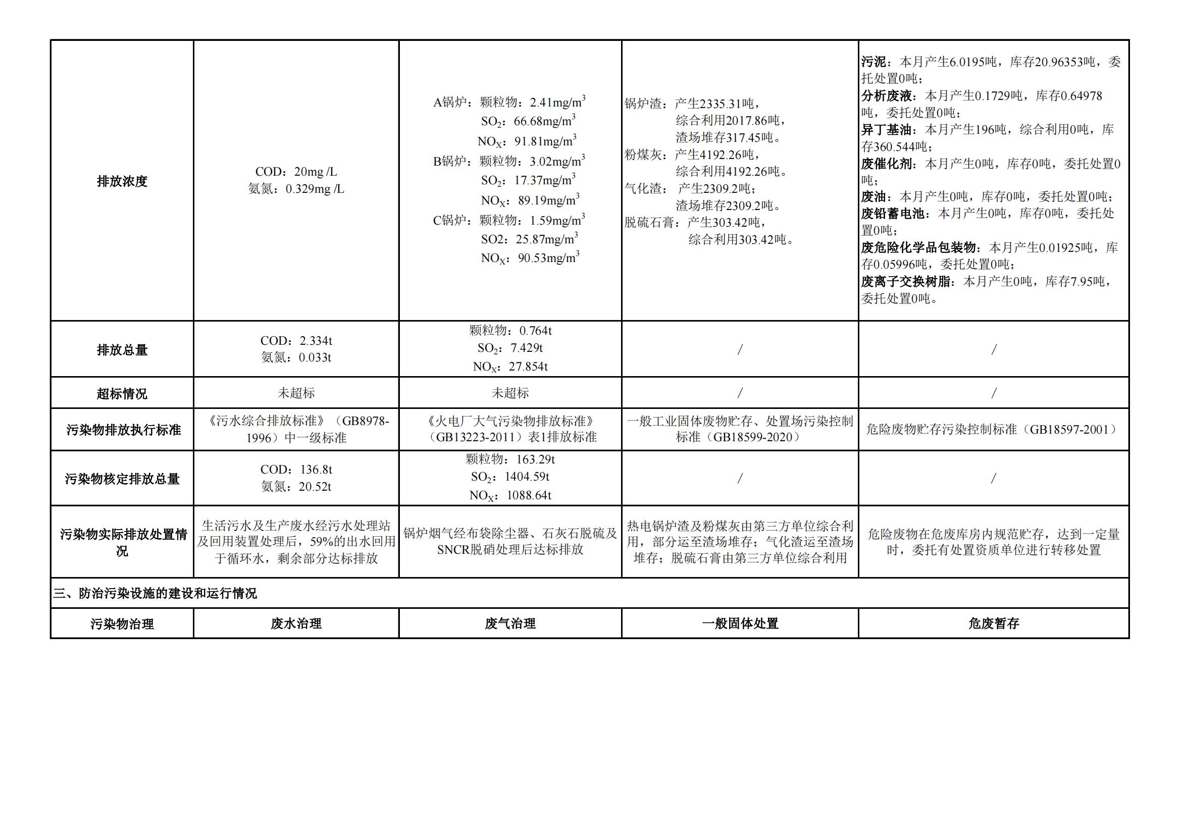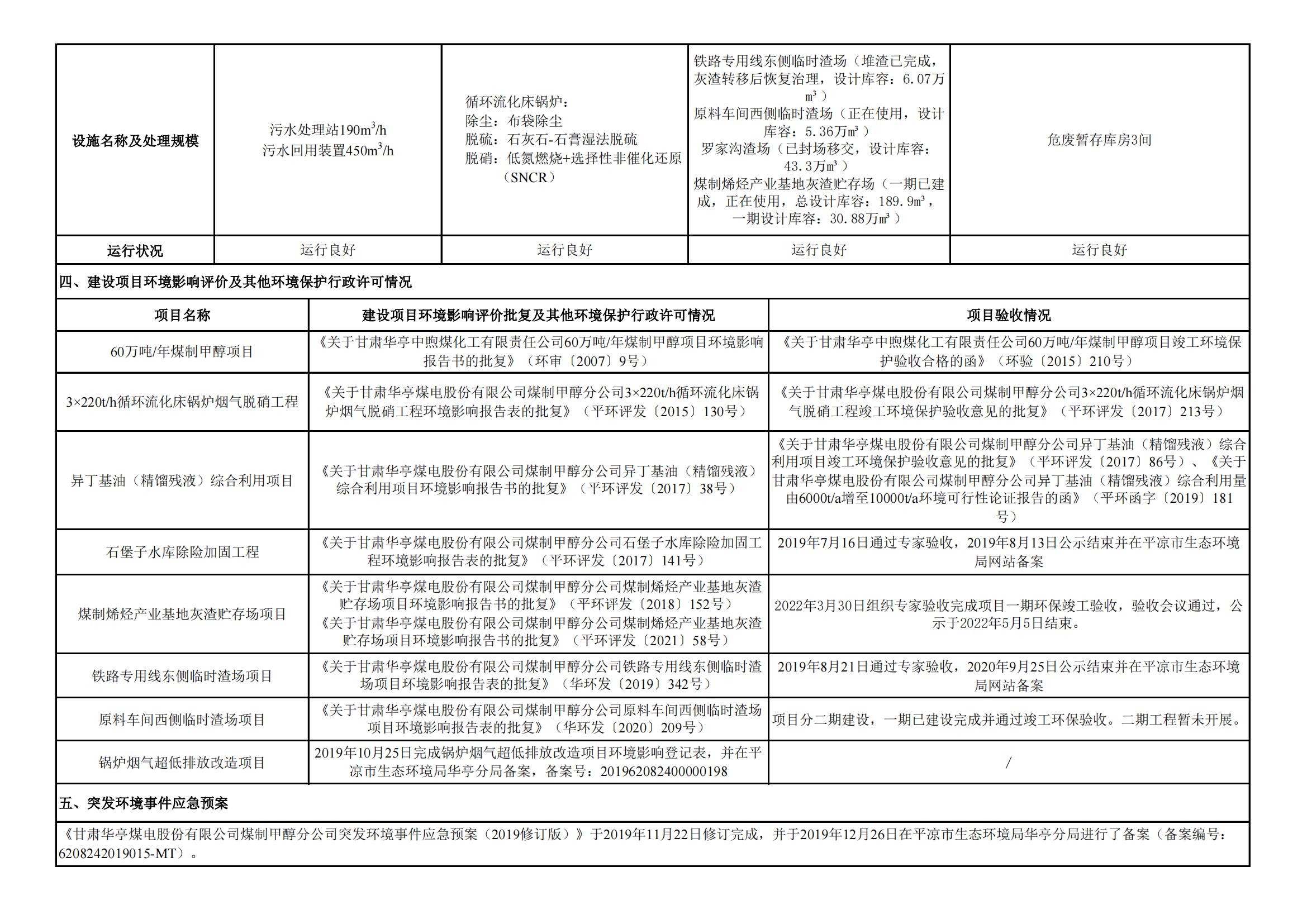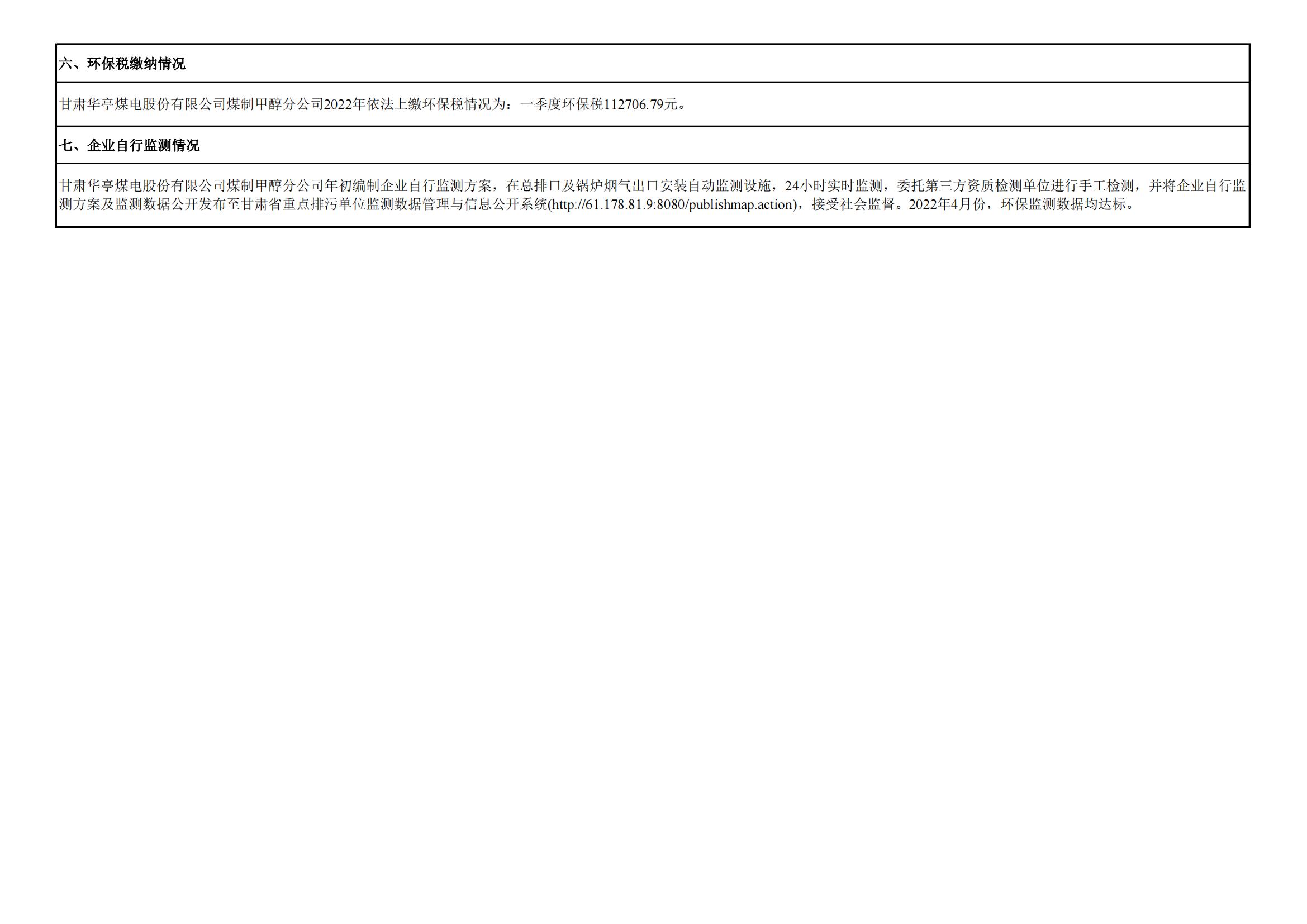 煤制甲醇分公司环境信息公开内容(2022年4月)