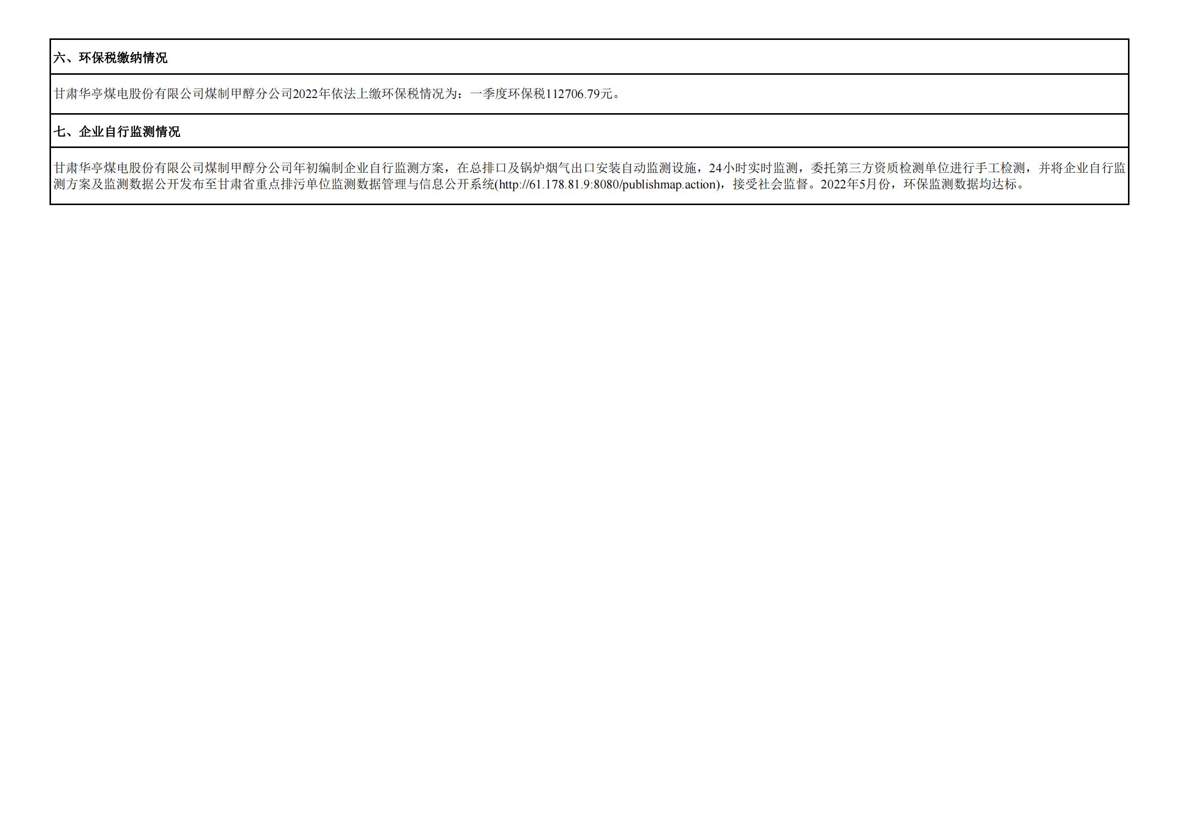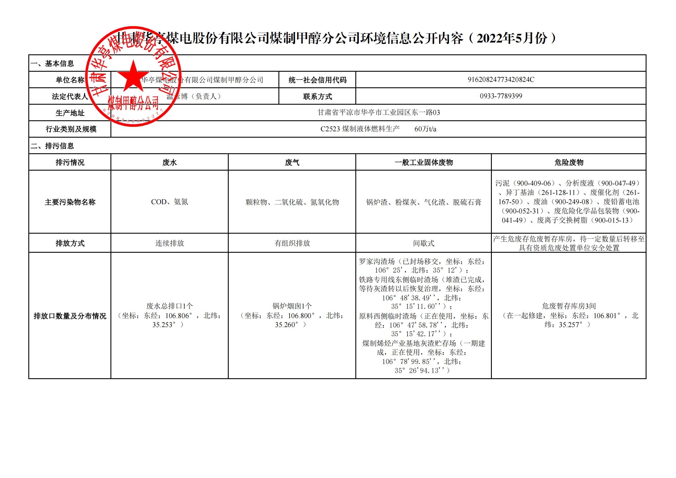 煤制甲醇分公司环境信息公开内容(2022年5月)