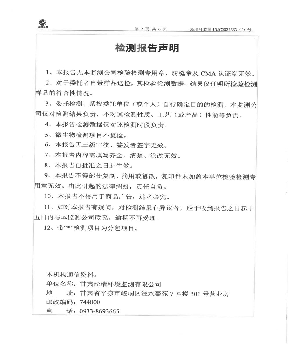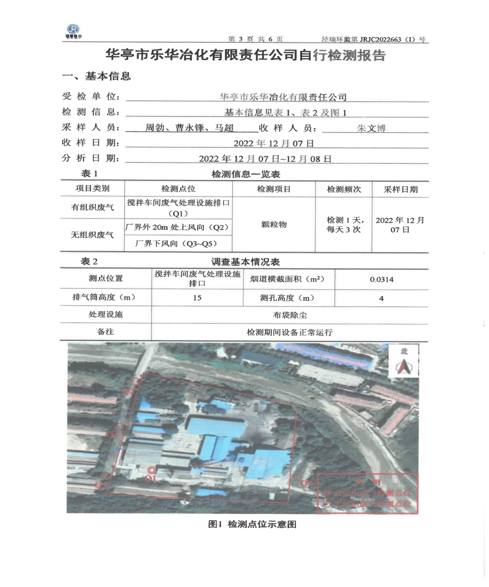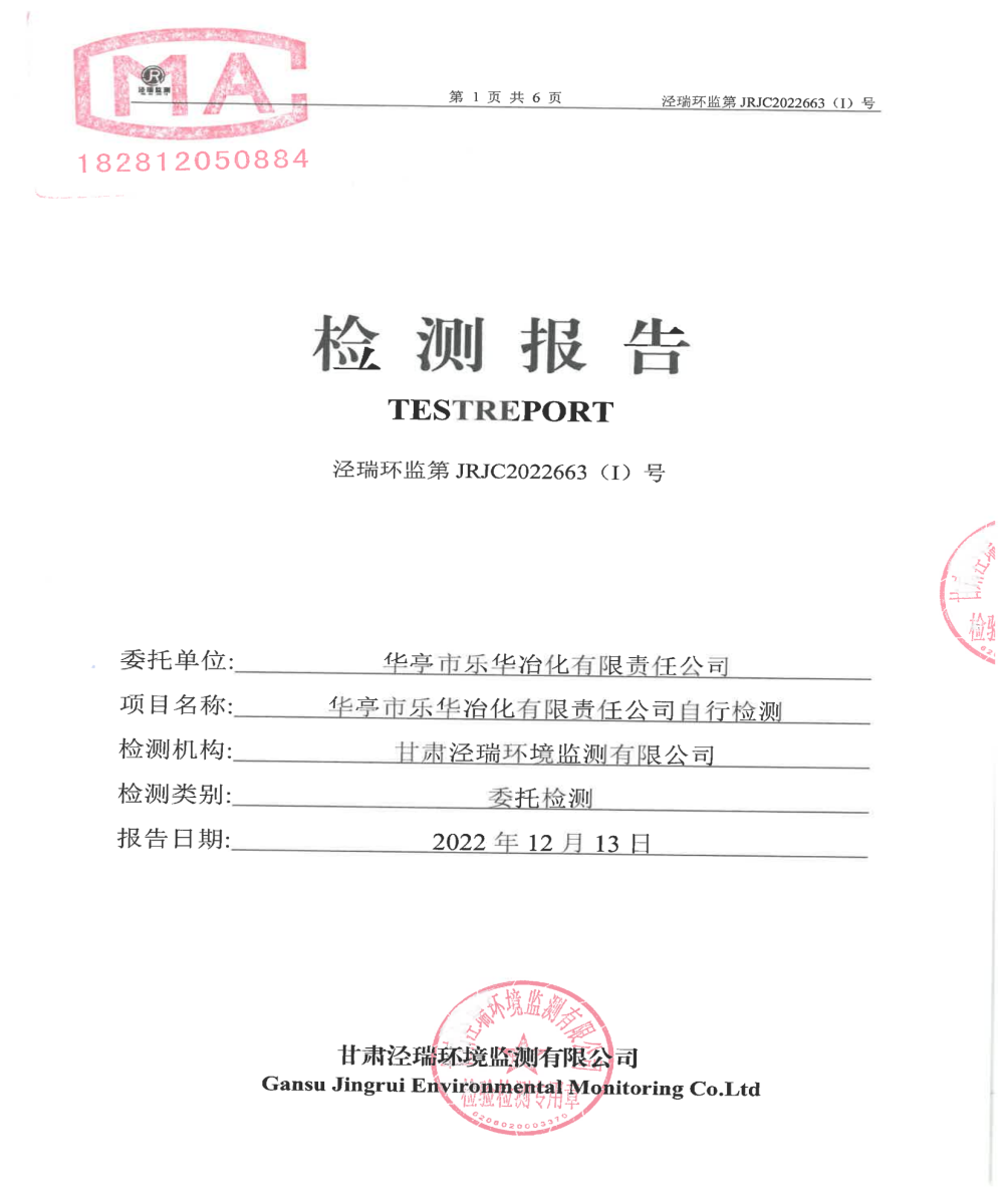 华亭市乐华冶化有限责任公司自行检测报告